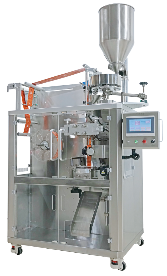 the machine is suitable for the measurement and packaging of particles, powders, liquids and sauces in food,medicine, chemical and cosmetics industries.(see page 6 for details to select the blanking structure)